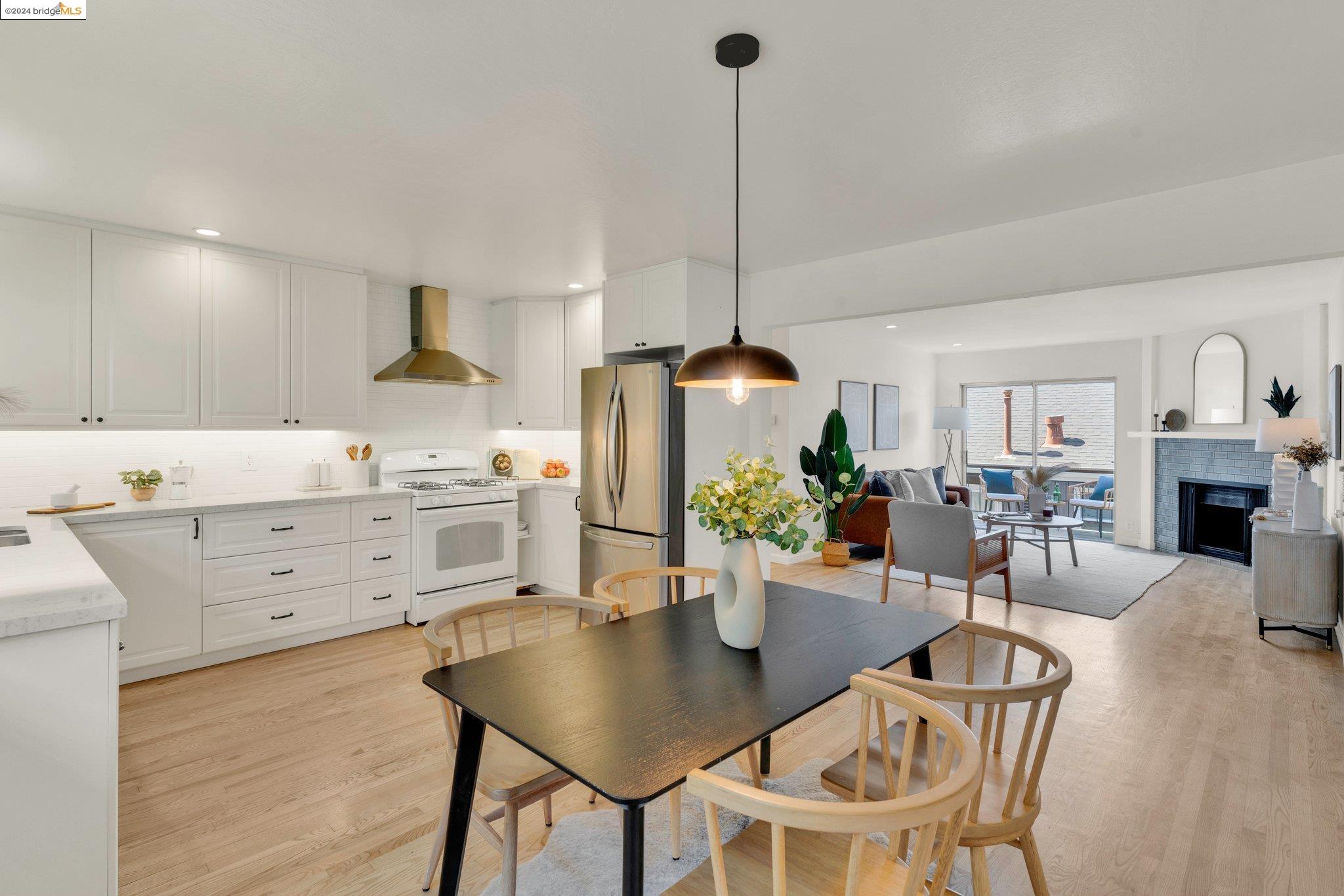 Welcome to this light-filled & charming condo in the heart of Alameda! This top floor 3 bedroom 2 bathroom gem boasts 1,268 square feet, freshly painted interior, refreshed baths with new tile floors, and a tastefully updated kitchen. As you enter this wonderful unit, you will be greeted by a lovely living room equipped with a blue-tiled wood-burning fireplace promising cozy evenings, and tranquil moments of relaxation on those cool nights. Outside on the sunny balcony, you can enjoy your morning coffee while catching some rays. Located in a cozy 4-unit building, this unit basks in natural light and each bedroom is generously sized with lots of space for family and guests. Nestled in the East End of Alameda so close to Park St. and South Shore Center, you're just minutes from downtown, where shops, restaurants, and entertainment await. Indulge yourself and enjoy all that Alameda has to offer: the iconic Alameda movie theater, strolls on the beach, and Christmas Tree Lane, just to name a few; not to mention, easy freeway and AC Transit access, as well as 3 ferry terminal options to SF, making commuting a breeze. Don't miss your chance to call this delightful home your own. Experience the epitome of comfort, convenience, and community in one irresistible package!