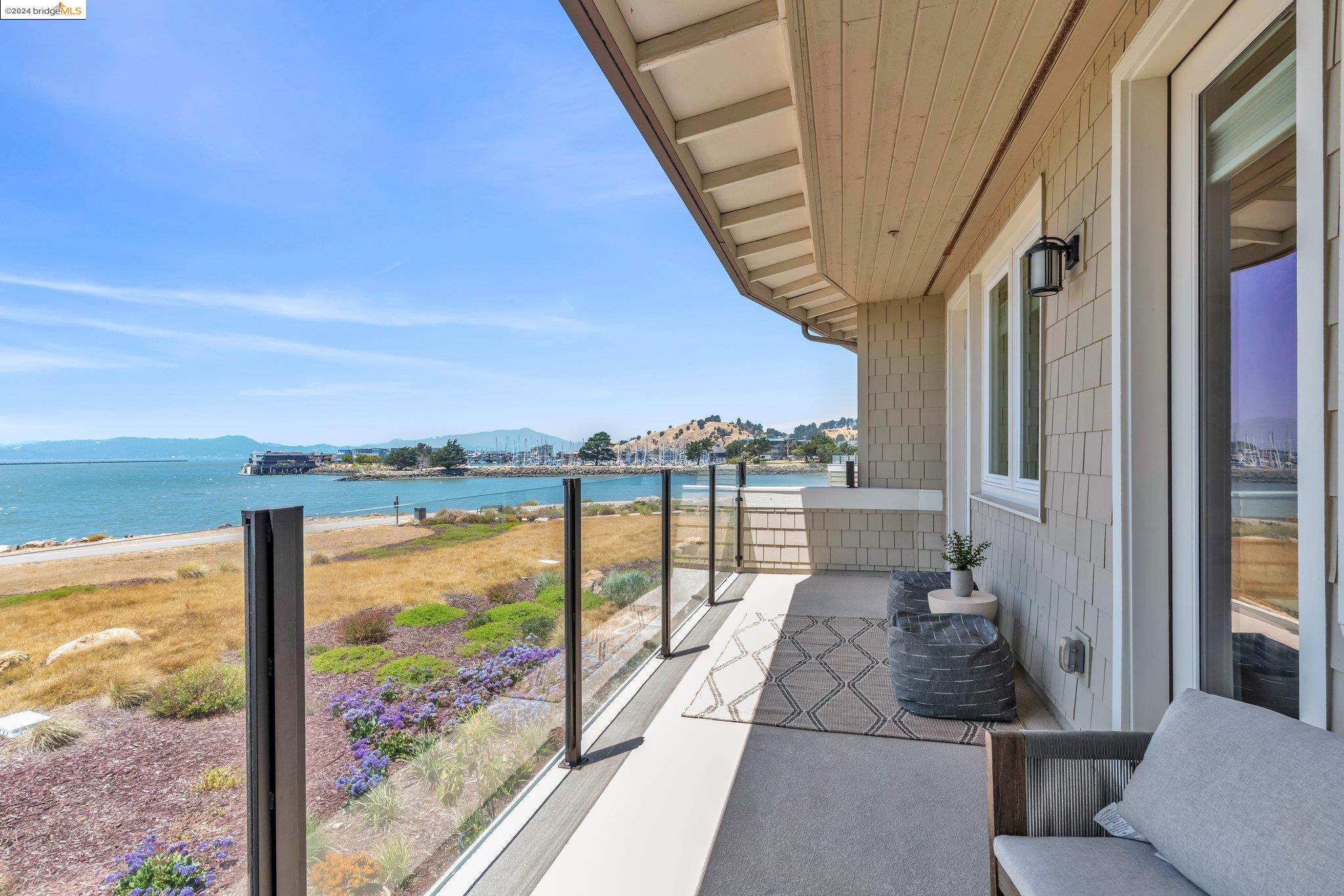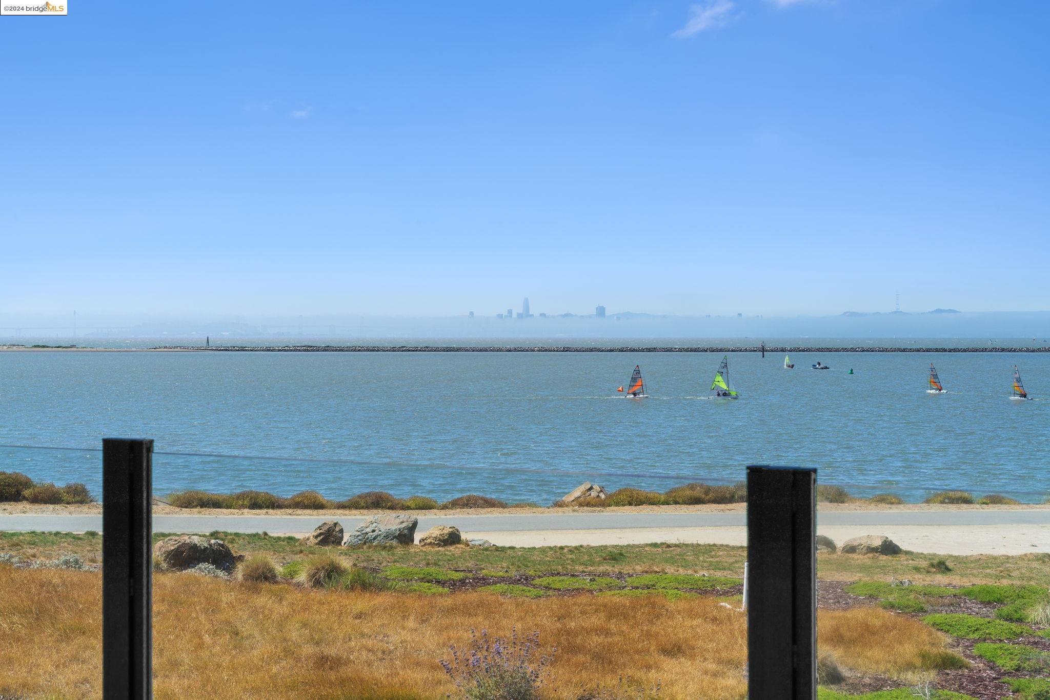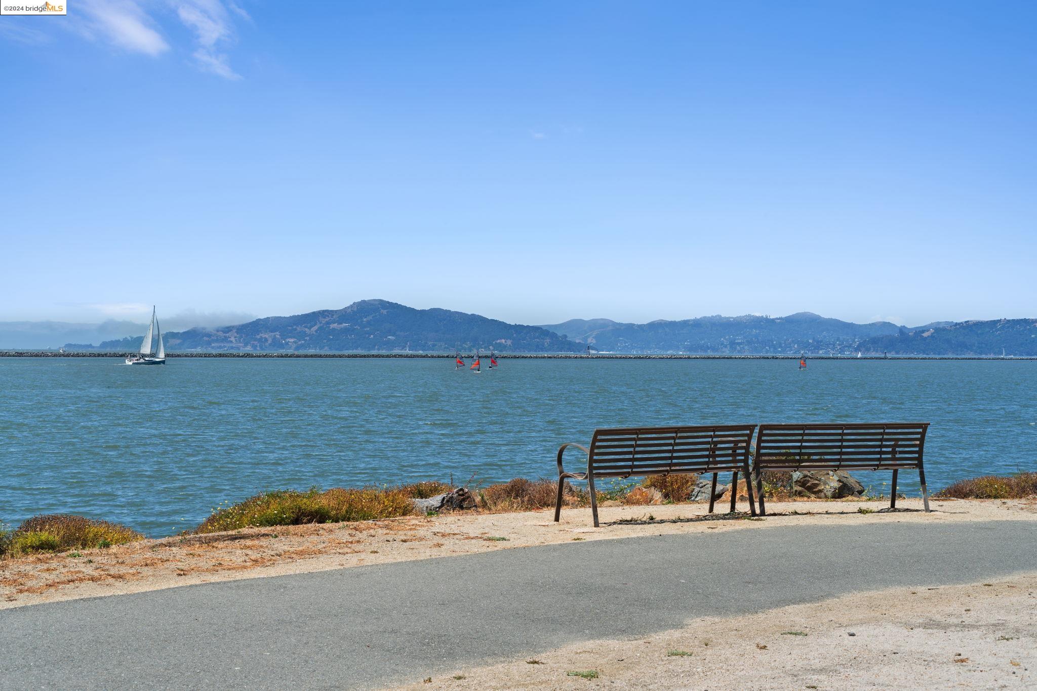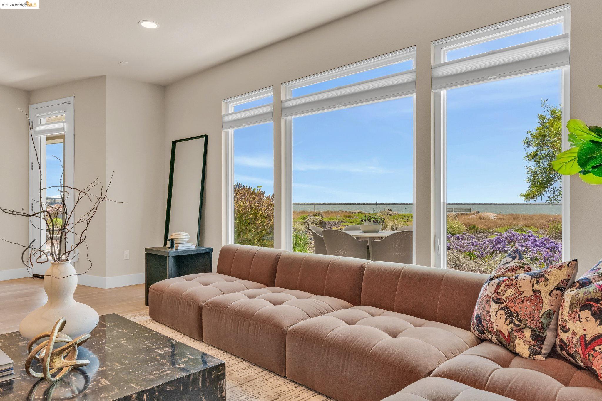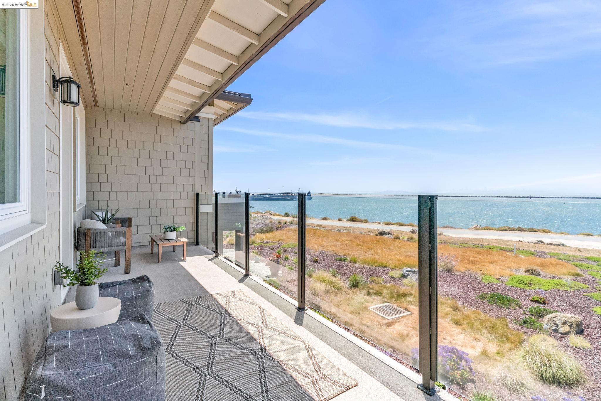 Experience unparalleled luxury and stunning vistas in this exquisite 3-bedroom, 3.5-bathroom home, boasting unobstructed panoramic views of San Francisco and the Bay. Imagine coming home to this secluded oasis with only beautifully landscaped grounds and a walking trail that separates you and the Bay. The open floor plan with living and dining areas, along with an expansive kitchen is perfect for modern living, and features a main level bedroom with an en-suite bath and two additional en-suite bedrooms on the second level, both with private balconies overlooking the Bay. The sun-drenched primary suite is a superb retreat featuring a sitting area, a spacious and sumptuous bath with a deep soaking tub and stall shower, and a walk-in closet. Enjoy the serenity of the lovely back patio with breathtaking views of SF, perfect for enjoying your morning coffee or sipping on your favorite cocktail. This unit is unique, with no residences above or below, ensuring ultimate privacy and tranquility. Conveniently located with easy ferry access to San Francisco and just minutes to Marin, Berkeley, and other East Bay amenities, this home offers both convenience and elegance. Don't miss the opportunity to own one of the most coveted properties with unrivaled views and exceptional living spaces.