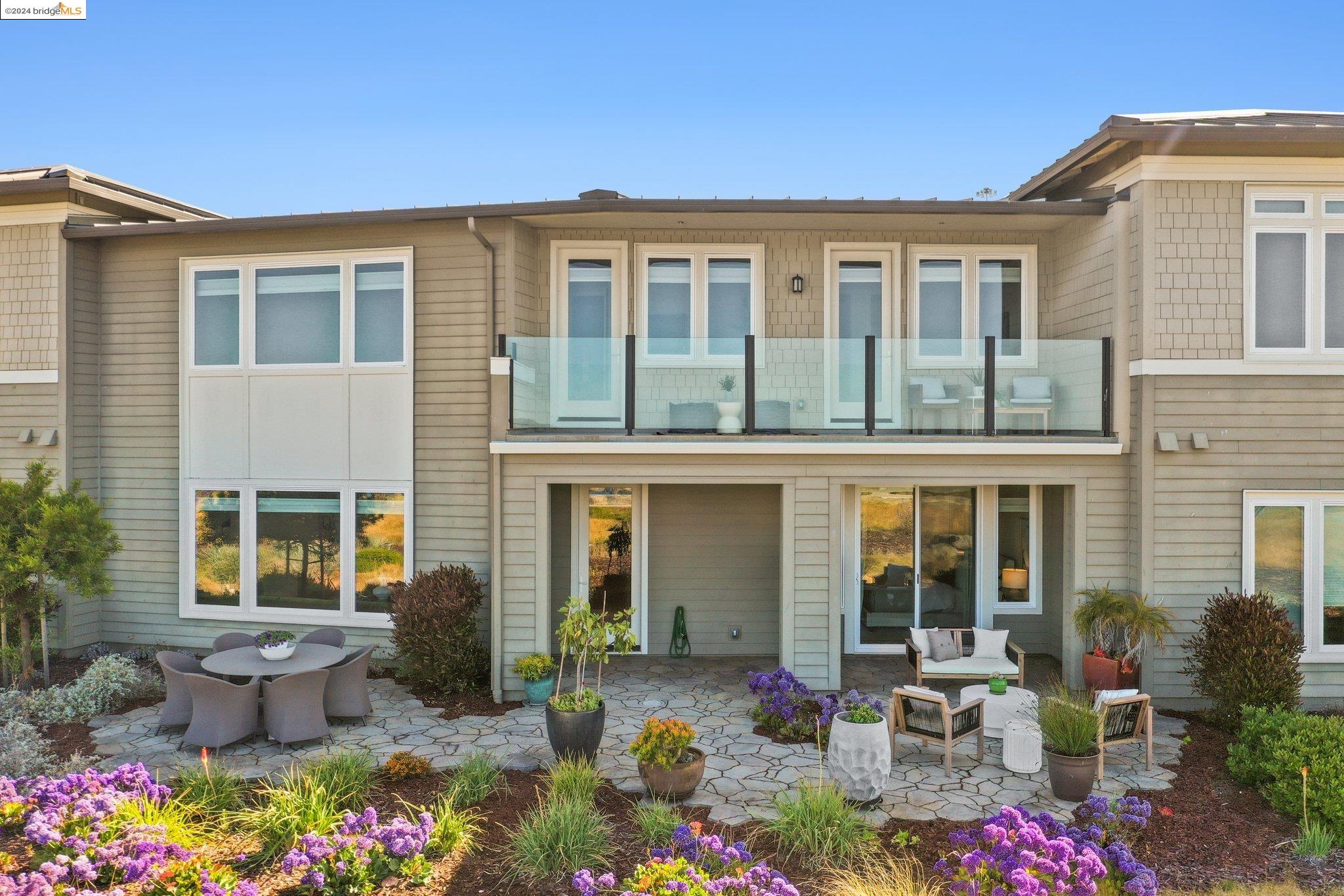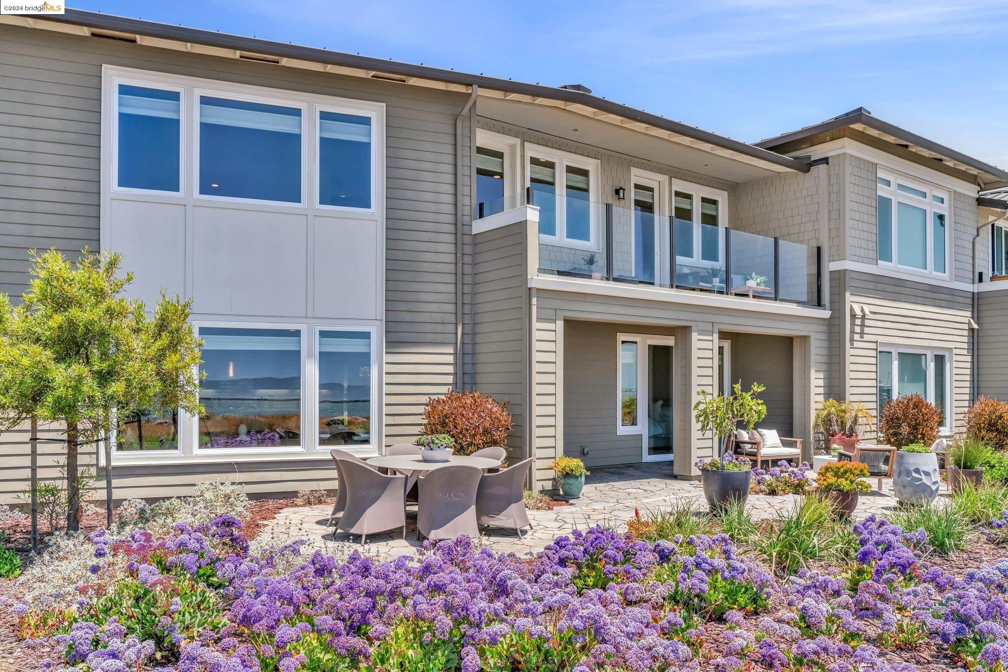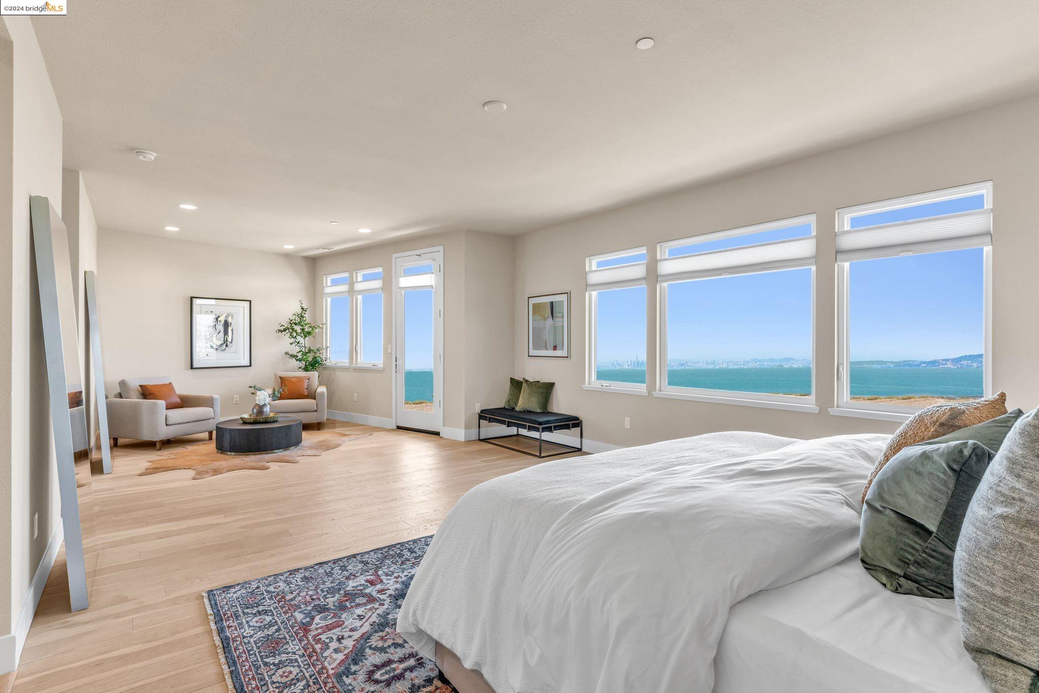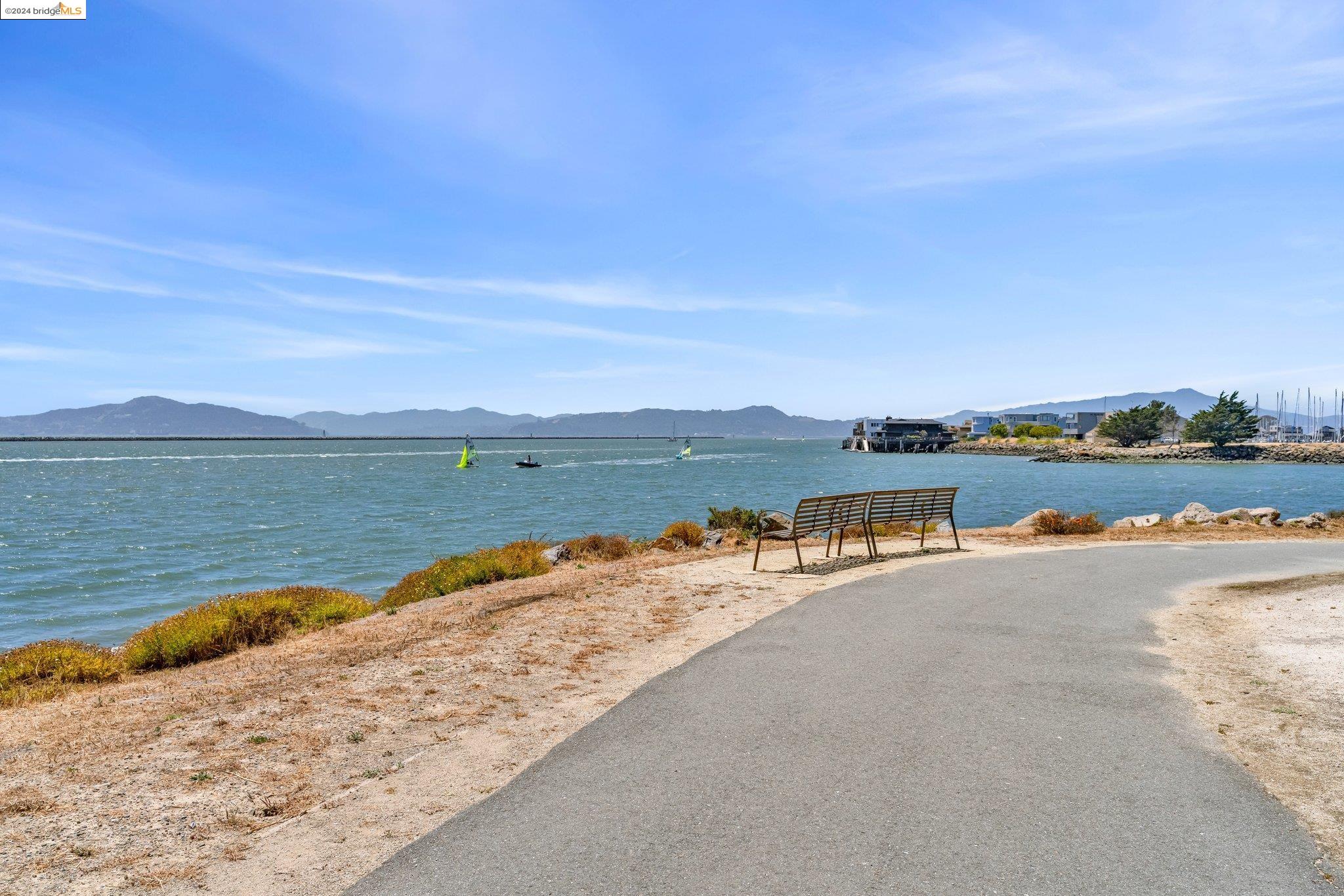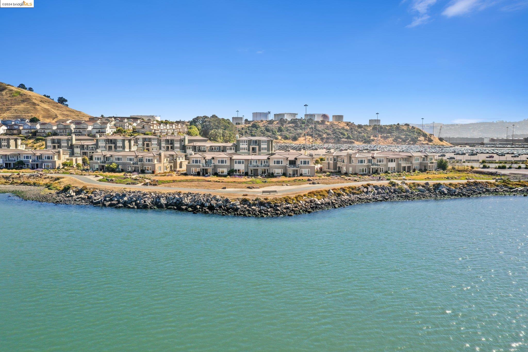 Experience unparalleled luxury and stunning vistas in this exquisite 3-bedroom, 3.5-bathroom home, boasting unobstructed panoramic views of San Francisco and the Bay. Imagine coming home to this secluded oasis with only beautifully landscaped grounds and a walking trail that separates you and the Bay. The open floor plan with living and dining areas, along with an expansive kitchen is perfect for modern living, and features a main level bedroom with an en-suite bath and two additional en-suite bedrooms on the second level, both with private balconies overlooking the Bay. The sun-drenched primary suite is a superb retreat featuring a sitting area, a spacious and sumptuous bath with a deep soaking tub and stall shower, and a walk-in closet. Enjoy the serenity of the lovely back patio with breathtaking views of SF, perfect for enjoying your morning coffee or sipping on your favorite cocktail. This unit is unique, with no residences above or below, ensuring ultimate privacy and tranquility. Conveniently located with easy ferry access to San Francisco and just minutes to Marin, Berkeley, and other East Bay amenities, this home offers both convenience and elegance. Don't miss the opportunity to own one of the most coveted properties with unrivaled views and exceptional living spaces.