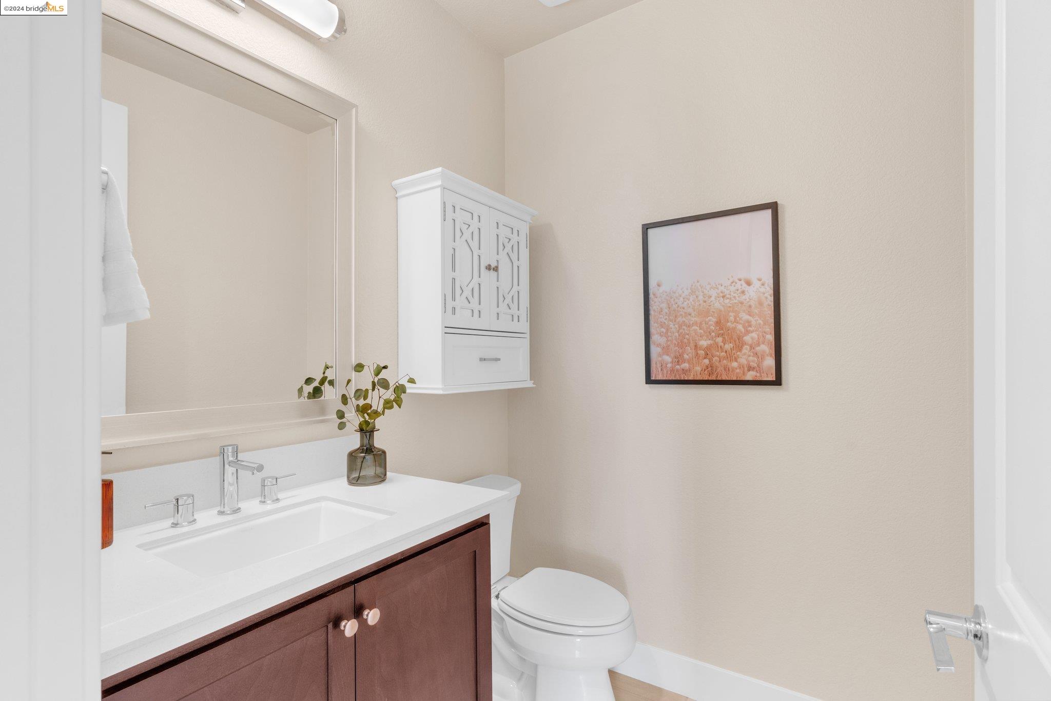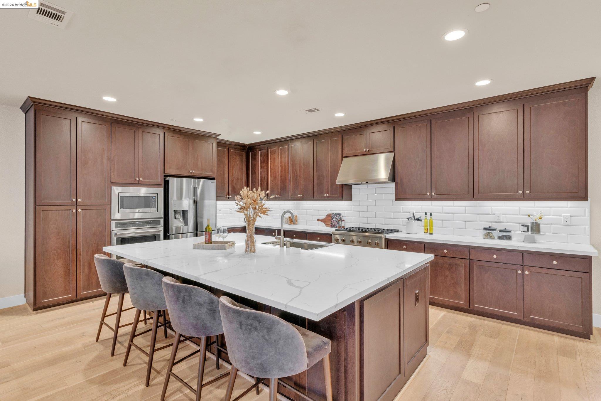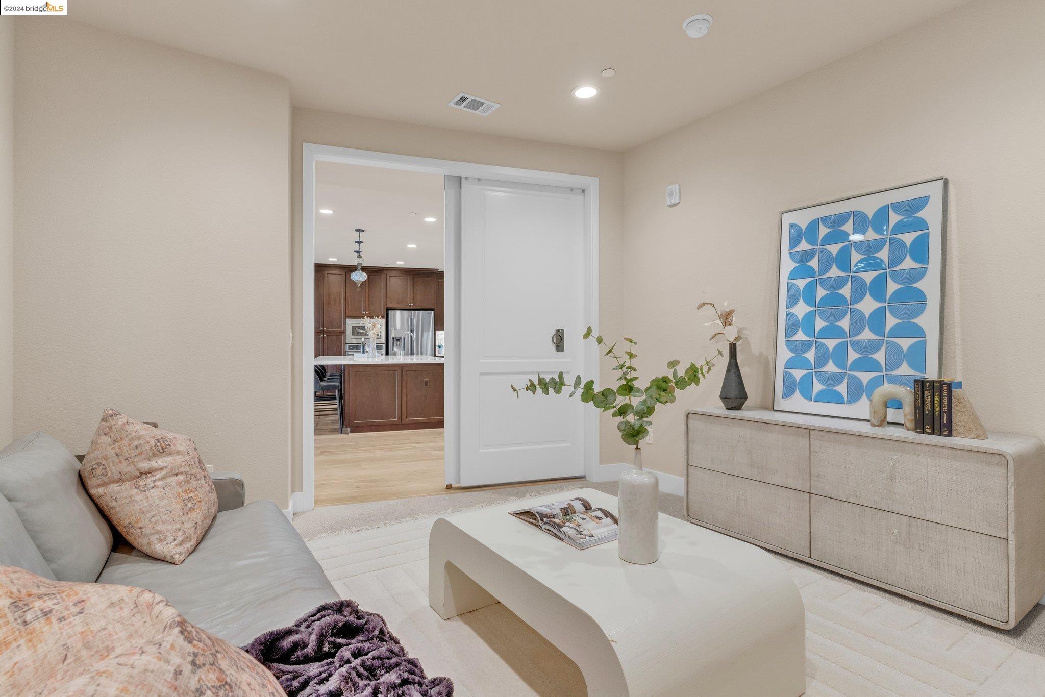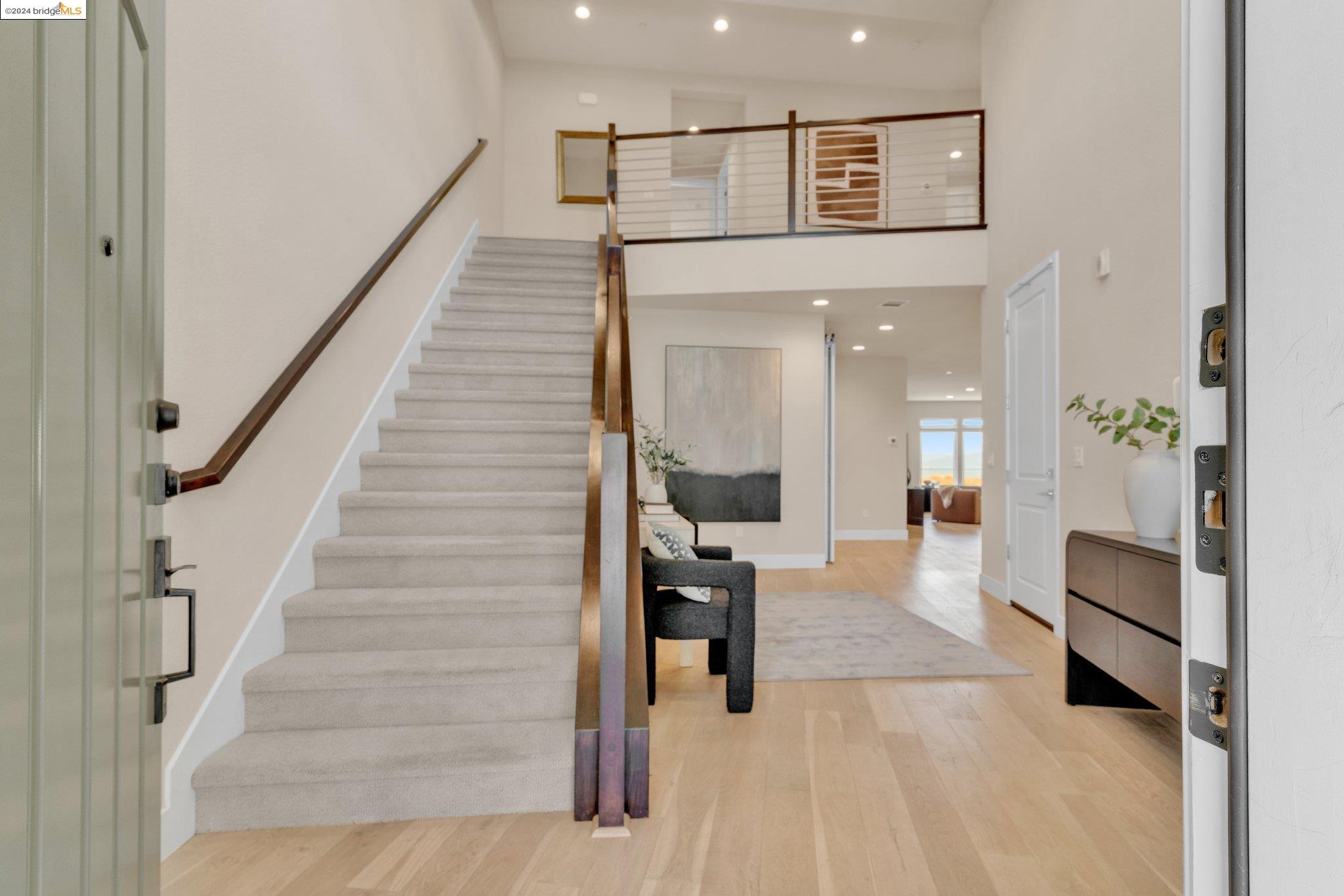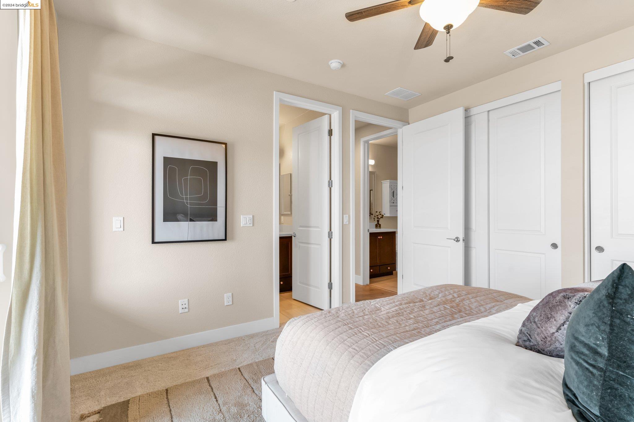 Experience unparalleled luxury and stunning vistas in this exquisite 3-bedroom, 3.5-bathroom home, boasting unobstructed panoramic views of San Francisco and the Bay. Imagine coming home to this secluded oasis with only beautifully landscaped grounds and a walking trail that separates you and the Bay. The open floor plan with living and dining areas, along with an expansive kitchen is perfect for modern living, and features a main level bedroom with an en-suite bath and two additional en-suite bedrooms on the second level, both with private balconies overlooking the Bay. The sun-drenched primary suite is a superb retreat featuring a sitting area, a spacious and sumptuous bath with a deep soaking tub and stall shower, and a walk-in closet. Enjoy the serenity of the lovely back patio with breathtaking views of SF, perfect for enjoying your morning coffee or sipping on your favorite cocktail. This unit is unique, with no residences above or below, ensuring ultimate privacy and tranquility. Conveniently located with easy ferry access to San Francisco and just minutes to Marin, Berkeley, and other East Bay amenities, this home offers both convenience and elegance. Don't miss the opportunity to own one of the most coveted properties with unrivaled views and exceptional living spaces.