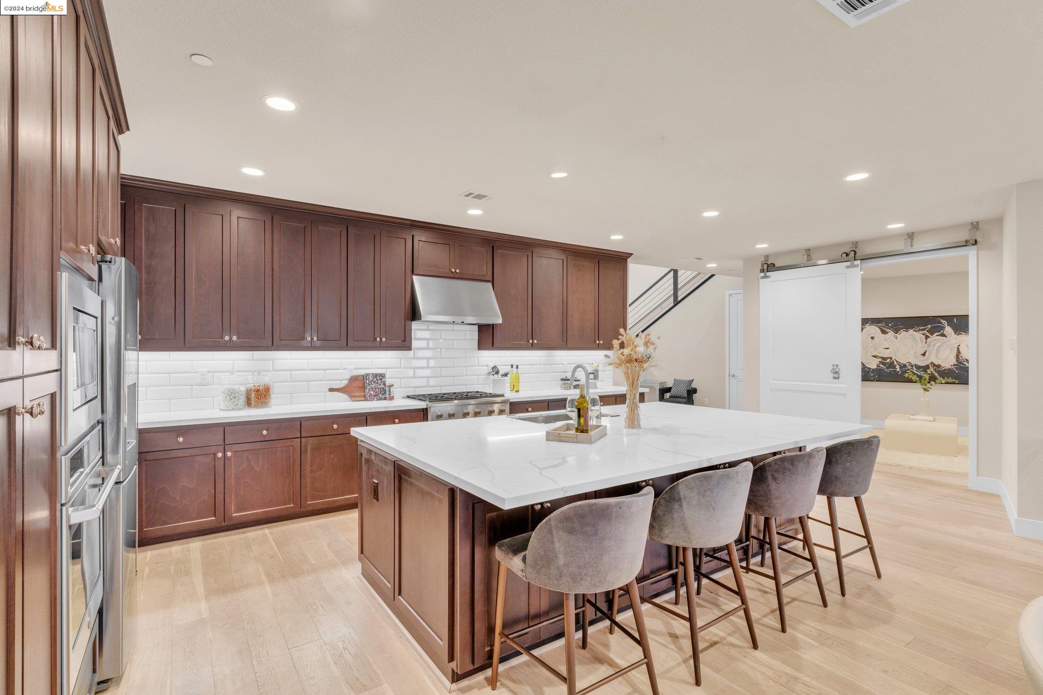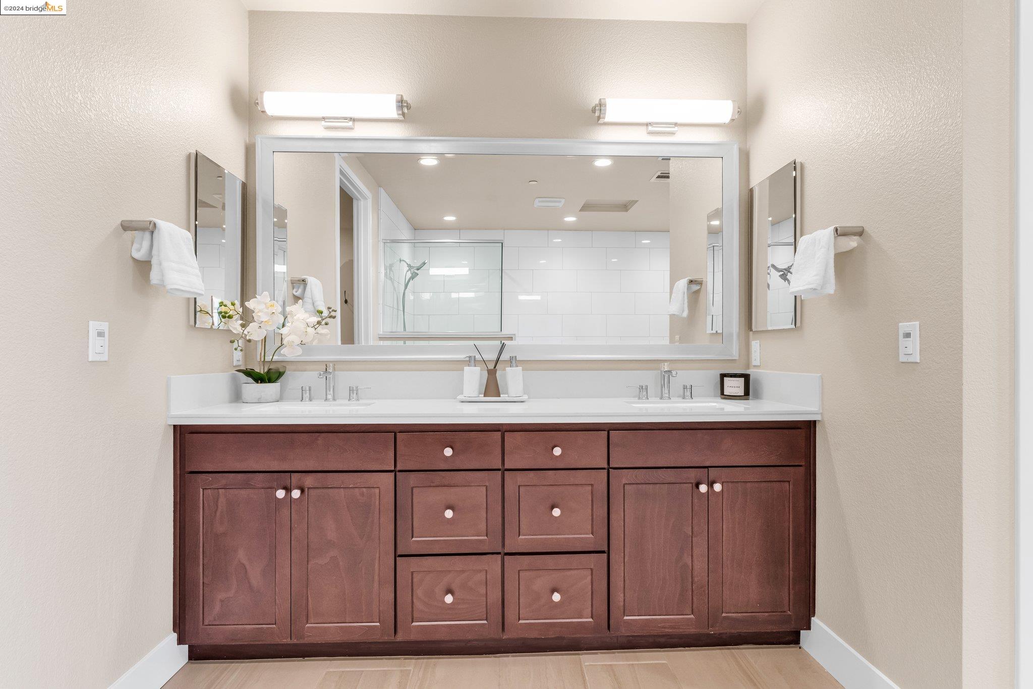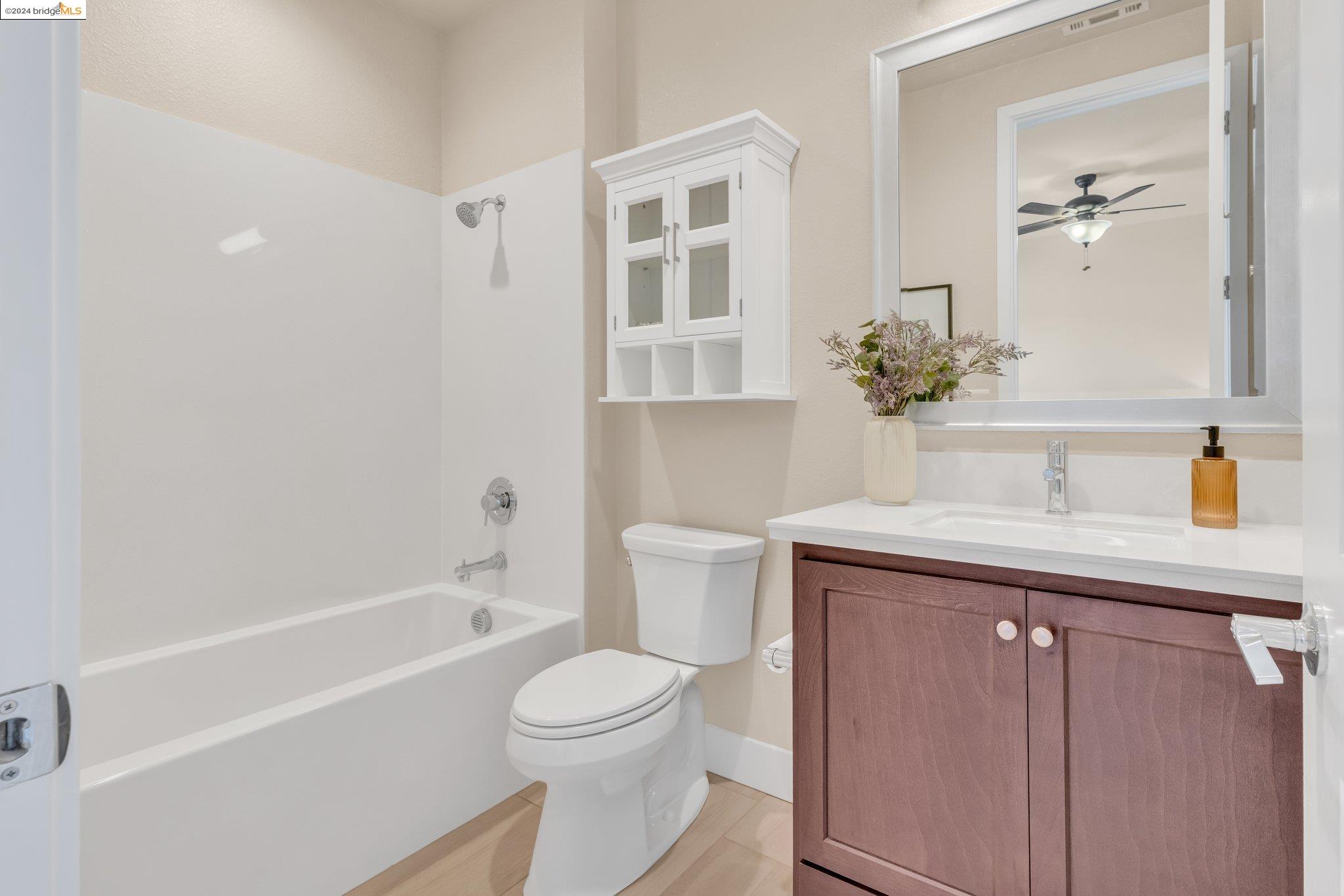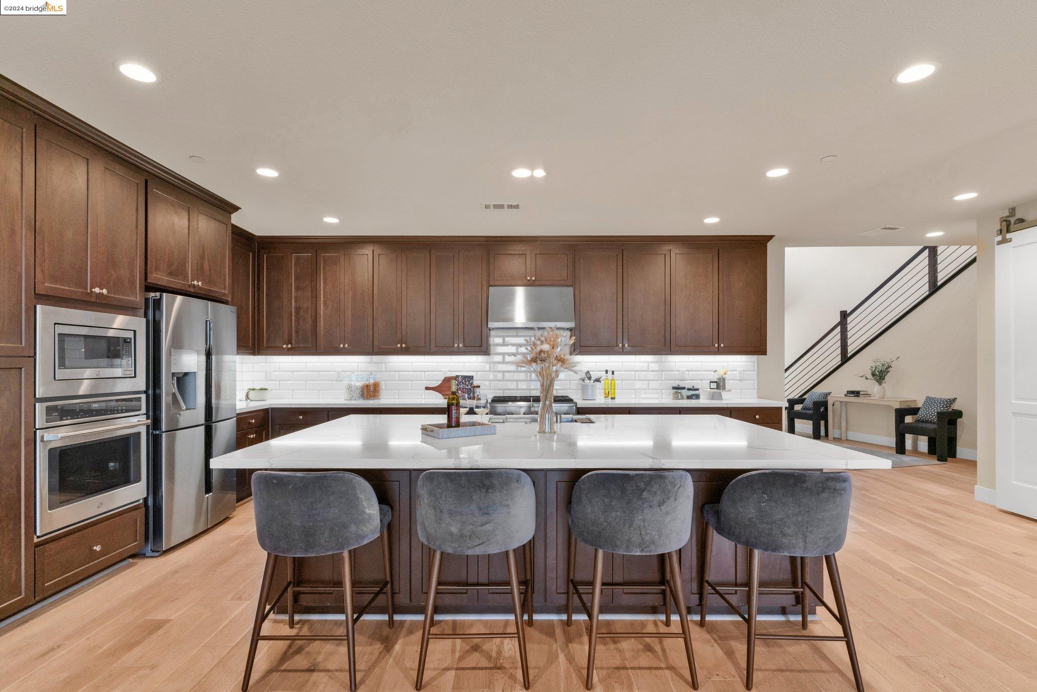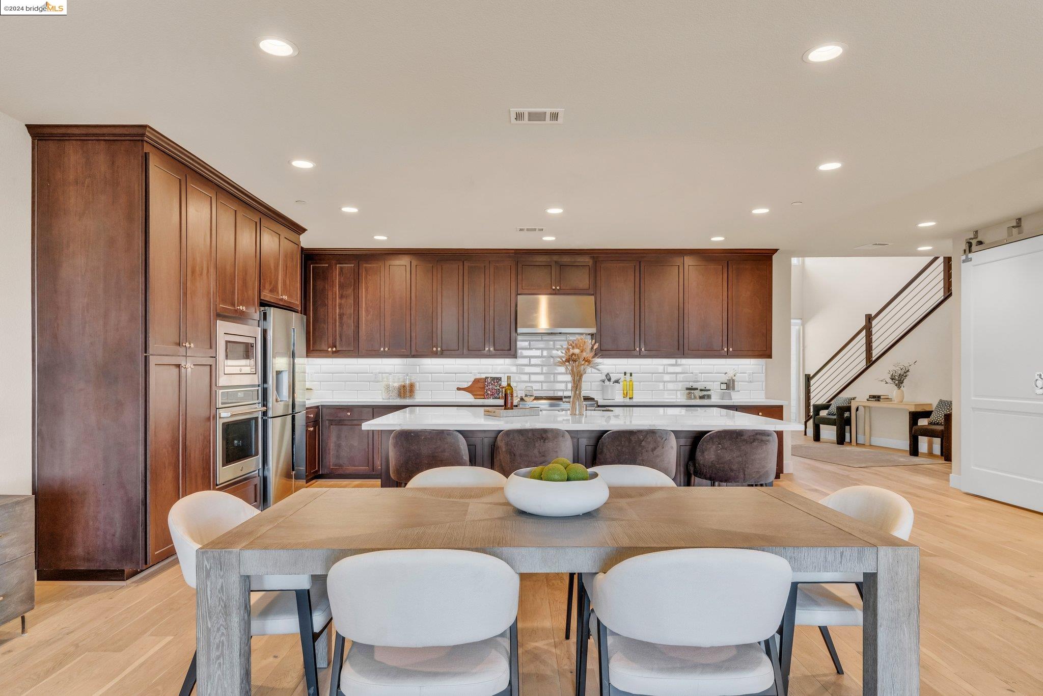 Experience unparalleled luxury and stunning vistas in this exquisite 3-bedroom, 3.5-bathroom home, boasting unobstructed panoramic views of San Francisco and the Bay. Imagine coming home to this secluded oasis with only beautifully landscaped grounds and a walking trail that separates you and the Bay. The open floor plan with living and dining areas, along with an expansive kitchen is perfect for modern living, and features a main level bedroom with an en-suite bath and two additional en-suite bedrooms on the second level, both with private balconies overlooking the Bay. The sun-drenched primary suite is a superb retreat featuring a sitting area, a spacious and sumptuous bath with a deep soaking tub and stall shower, and a walk-in closet. Enjoy the serenity of the lovely back patio with breathtaking views of SF, perfect for enjoying your morning coffee or sipping on your favorite cocktail. This unit is unique, with no residences above or below, ensuring ultimate privacy and tranquility. Conveniently located with easy ferry access to San Francisco and just minutes to Marin, Berkeley, and other East Bay amenities, this home offers both convenience and elegance. Don't miss the opportunity to own one of the most coveted properties with unrivaled views and exceptional living spaces.